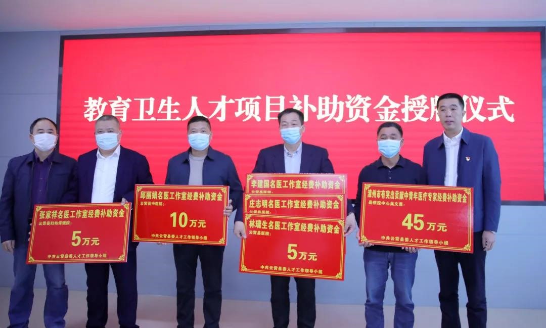 县委常委、组织部部长方毅强,副县长吴志英分别为全县各行业、各领域高层次人才带去“政策好礼”,为各类人才对接交流平台送来“扶智资金”,其中,为漳州市有突出贡献中青年颁发医疗专家经费45万元,为张家祥等5家名医工作室颁发经费补助资金30万元;为漳州市中小学优秀名师颁发经费补助资金,为高校硕士毕业生发放安家及生活补助资金,为漳州市中小学优秀名师发放经费补助。