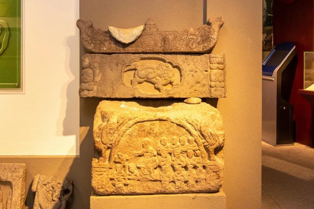 走进序厅,映入眼帘的一幅砂岩浮雕作品叫做《唐军南来图》,它表现的是陈氏三代魏敬、陈政、陈元光南来平乱的场景,当时陈元光13岁随父出征。唐军南来后,开启了漳州发展的新纪元。