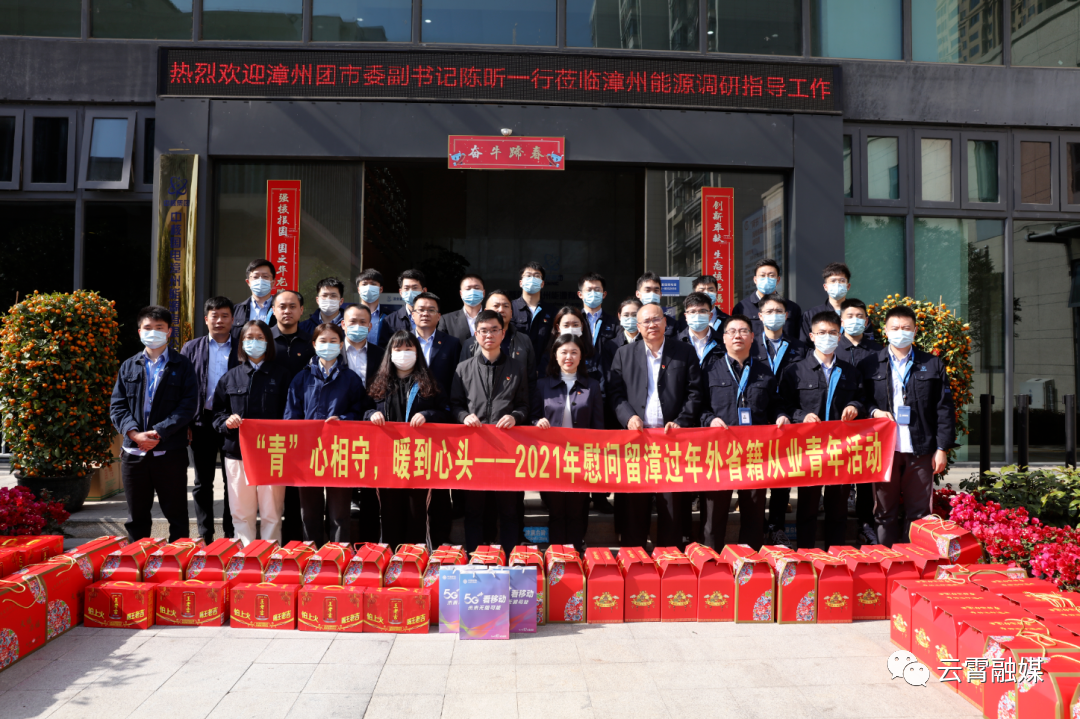 据悉,在我县和孟祥一样响应倡议就地过年的青年共计82名,为了让“异乡青年”同样能过一个舒心的春节,漳州团市委与云霄团县委一同,联合云霄农信联社、中国移动云霄分公司、广州王老吉大健康企业发展有限公司、漳州市天健医药有限公司、下河乡团委出实招用暖招,先后到中核国电漳州能源有限公司、福建省奥克兰光电科技有限公司,看望慰问企业留云过年的外地青年员工,发放“共青团年货礼包”,感谢他们为我县疫情防控、重点项目建设贡献力量,希望他们节日期间坚持安全生产,注意劳逸结合,平安快乐地度过这个特别的春节。