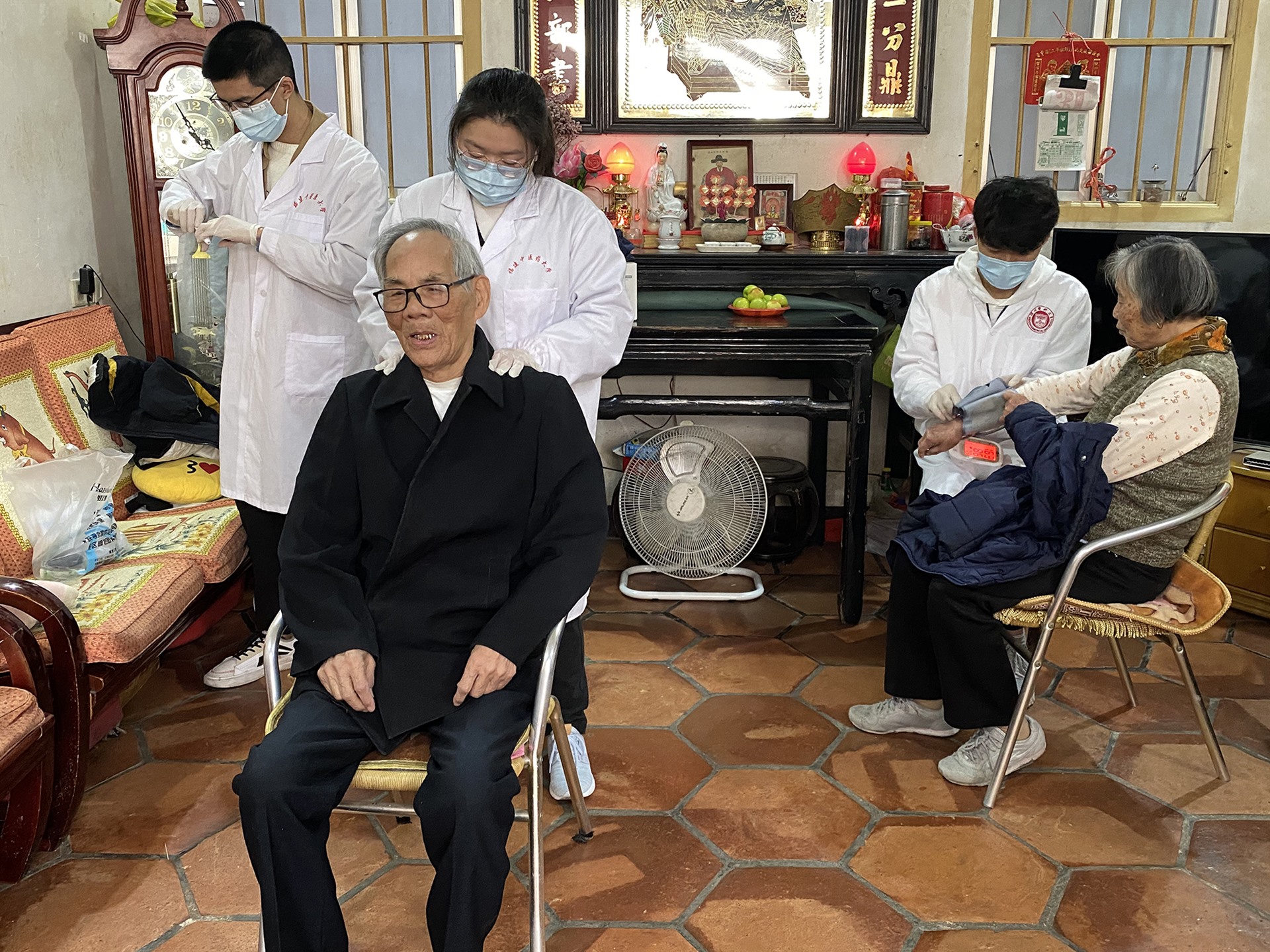“把爱带回家”——“四送”活动二:20余名义诊志愿者到多个村开展“健康义诊”活动。志愿者们为留守老人免费提供量血压、测血糖、中医推拿等服务,并通过发放宣传单、提供咨询热线的形式,向大家提供健康义诊、咨询,宣传普及健康卫生知识。活动共发放宣传单800余份,健康义诊100余人,切实有效地为村民提供了医疗援助。