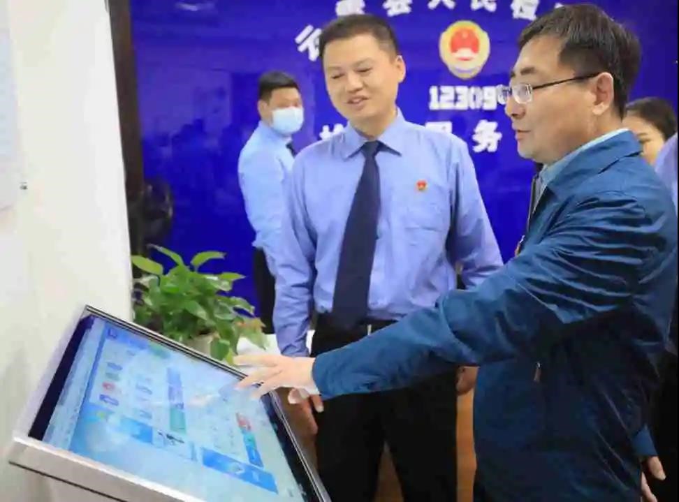 检查组一行实地查看了我县检察院12309检察服务中心、听证室、视频接访室,检查了全国检察机关文明接待室创建材料,核查了网信2.0系统、统一业务应用系统中信访案件的回复率。