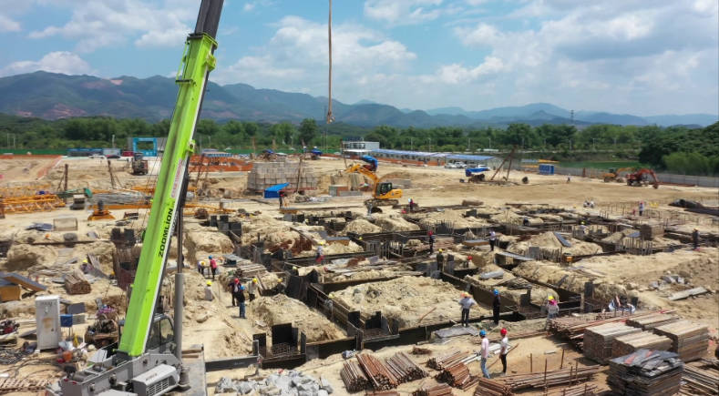 5月12日上午,在县委党校(行政学校)新校区建设项目施工现场,记者看到,桩机、挖掘机等机械设备正紧张作业,伴随着机械轰鸣声,工人们也在各自的岗位加紧施工,现场一派繁忙。