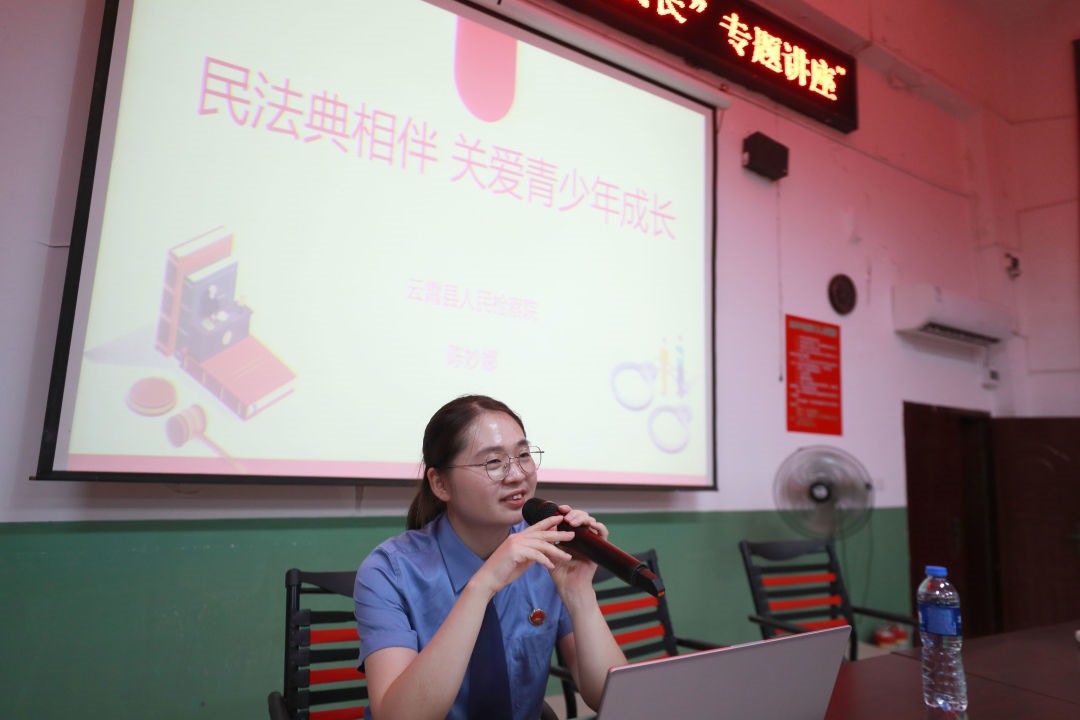 为深入贯彻“我为群众办实事”实践活动,增强青少年法治意识,切实让《民法典》走进校园,走进青少年的心里。5月25日晚,县人民检察院员额检察官、云霄立人学校法治副校长陈妙娜受邀走进云霄立人学校,以“民法典相伴,关爱青少年成长”为主题,举办《民法典》专题法治讲座。