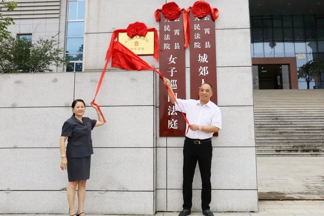 县委常委、政法委书记胡纯岗 县法院院长柯秀娟共同为少年法庭揭牌