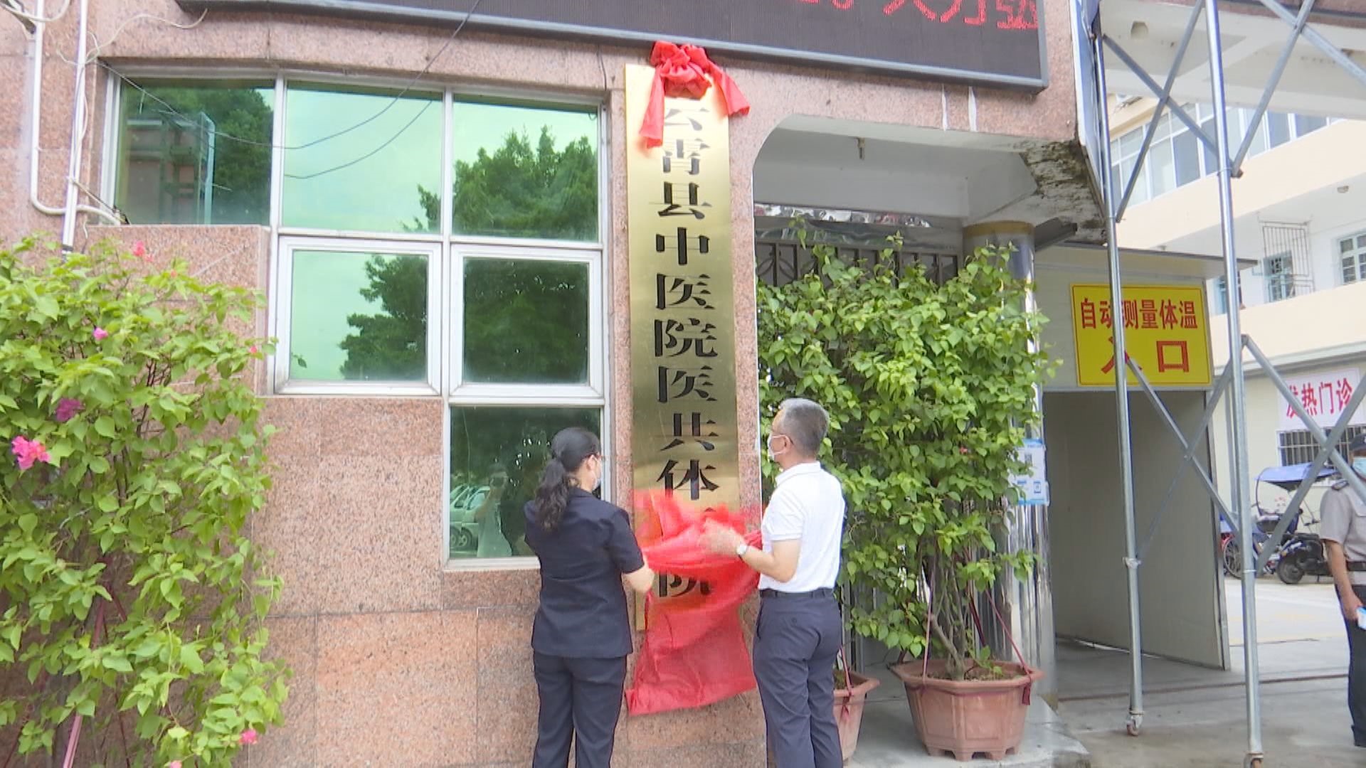 县委常委、宣传部部长林意纯、副县长周志坚共同为县医院、县中医院医共体医院揭牌。