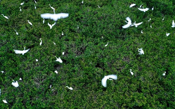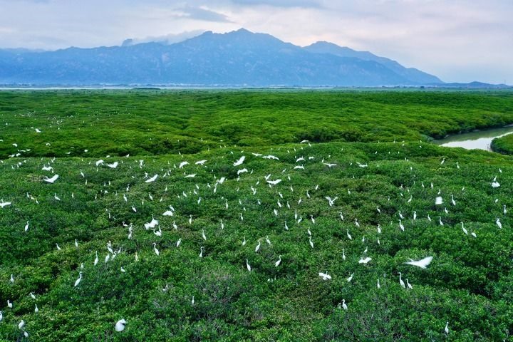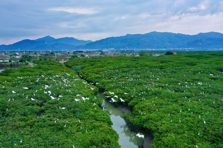 福建漳江口红树林自然保护区科研宣教中心主任告诉记者,现在很多白鹭都在那边觅食、休息。这几年通过观测,有一个比较重要的物种叫黑脸琵鹭。去年一下子连续监测到了21只,还有水上大熊猫中华白海豚,中华白海豚已经连续三四年出现在出海口边上。