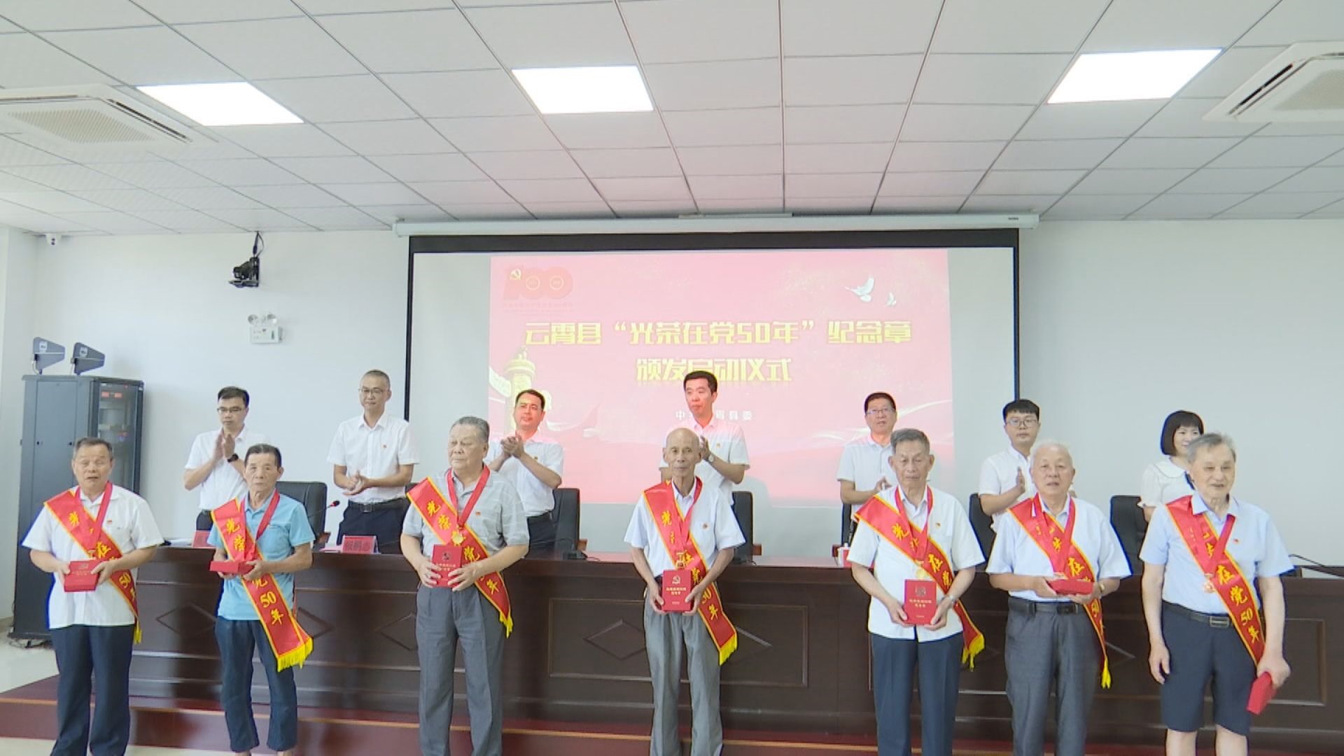 本报讯(徐荫圈 汤金梅)百年风雨兼程,百年卓越辉煌!在中国共产党成立100周年到来之际,6月18日上午,我县举行“光荣在党50年”纪念章颁发启动仪式,旨在通过颁发“光荣在党50年”纪念章,引导全县广大党员干部牢记初心使命、传承红色基因、永葆奋斗本色,为建设新云霄而努力奋斗!