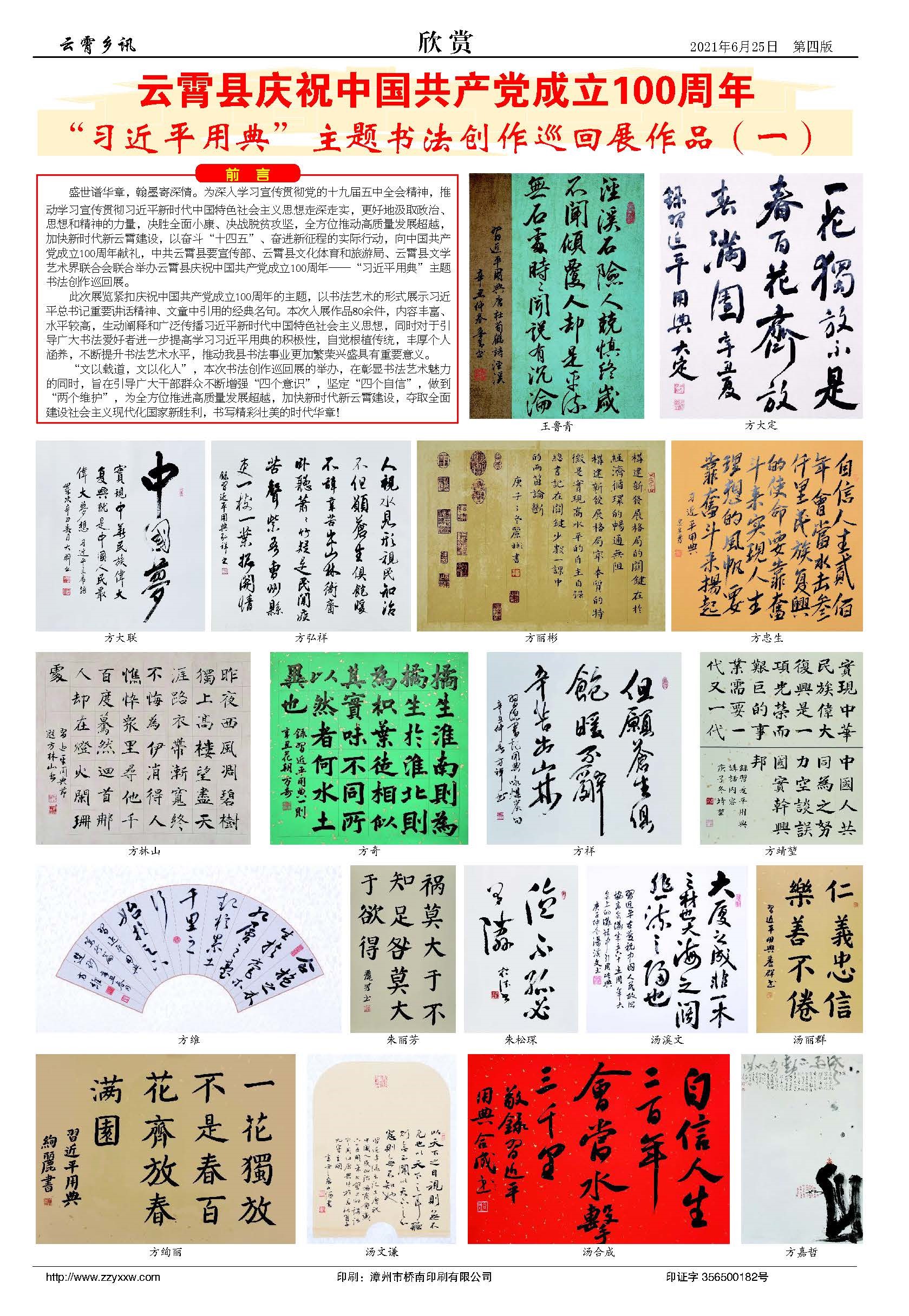 云霄县庆祝中国共产党成立100周年“习近平用典”主题书法创作巡回展(一)