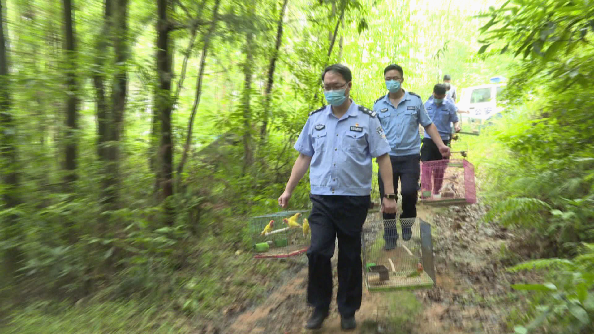 民警将查获野生鸟类全部放归大自然