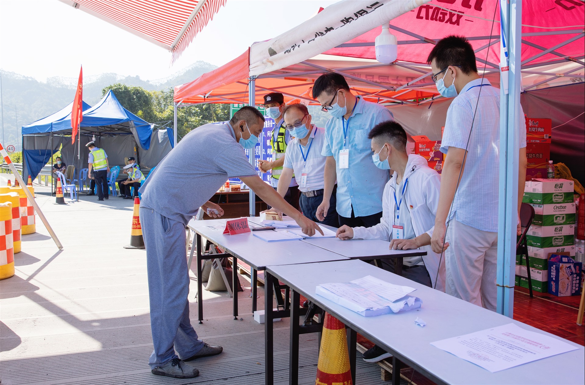 东厦镇党员干部轮流到云霄高速出口处进行24小时值班,配合卫生院、交警等相关单位做好对入云车辆、外来人员的管控、检测工作。