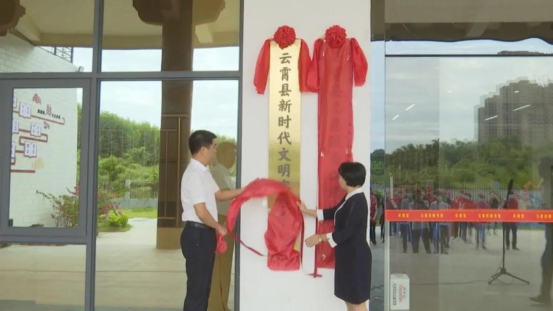 县委副书记方毅强、县委常委、宣传部部长吴志英共同为云霄县新时代文明实践中心、云霄县志愿服务促进中心揭牌,并为10支乡镇(开发区)新时代文明实践志愿服务大队和云霄县新时代文明实践中心十六支常备志愿服务队授旗。