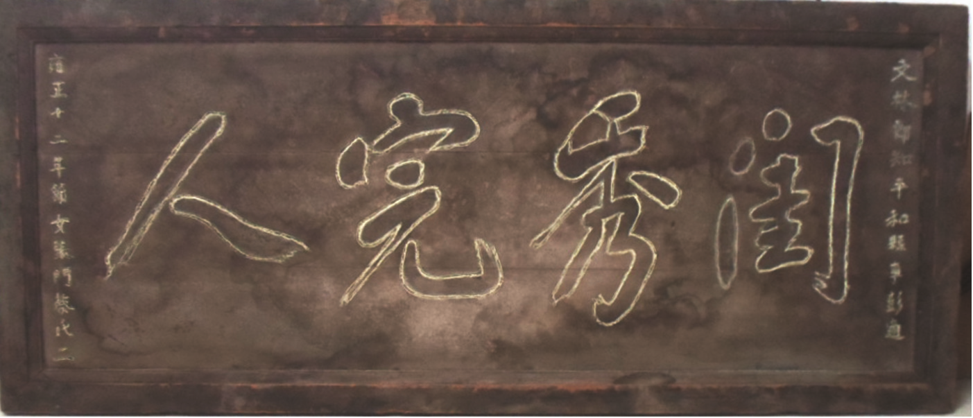 蔡氏名操,清初西林村人,17岁与菜埔村张继订婚后未嫁入门。未婚夫张继病亡后,以闺秀之身奔丧张家。她怜见其父母年老,不顾父母反对毅然为之守寡,靠缝补纺织供养家庭,细心服侍夫家父母。族中耆老张先跻感其贞节,帮她家置立后嗣延续香火,抚教孩子成长自立。张先跻将蔡氏事迹呈报平和县邑侯,雍正十二年(1734年),平和知县彭适题授此匾,悬立其家中给予褒扬。此间菜埔村仍属漳州平和县新安里辖区,刻匾古色古香,今存村民张增金祖屋,虽已剥漆,仍可判断为红底黑字,字体清晰可辨。而题匾者平和知县彭适于离任前所题赠。他为江南无锡进士、文林郎,雍正七至十二年知漳州府平和县事,对于研究封建伦常制度和地方民俗文化提供珍贵史证。