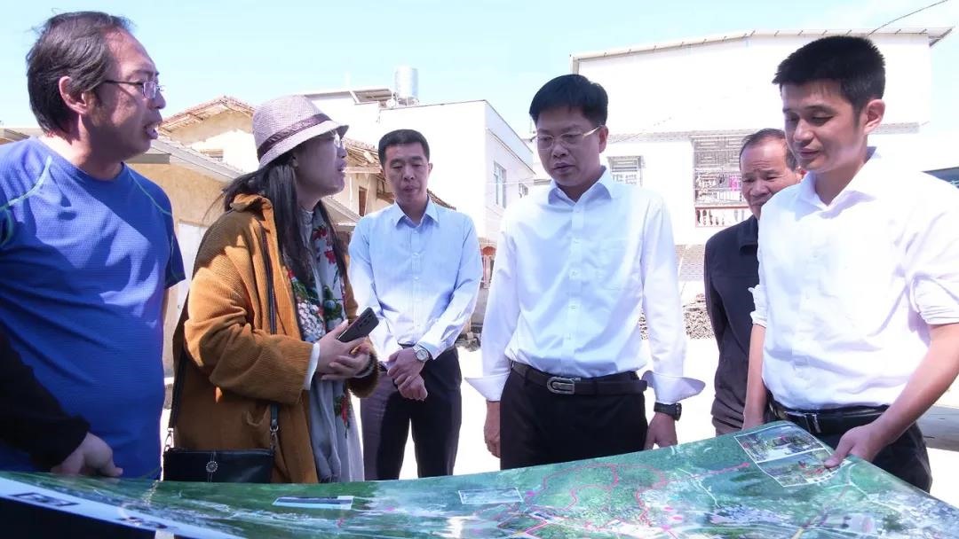 蓝良木一行一路走、一路看,沿途推进下洞、圳头等坡兜周边自然村环境整治工作,并就优化安前村半月楼和耕读研学基地规划方案提出指导意见。步入坡兜村寨后,蓝良木实地察看当地农村人居环境整治情况,对畲族文化馆、生态林漫道、生态水系等景观节点规划逐项优化提升。