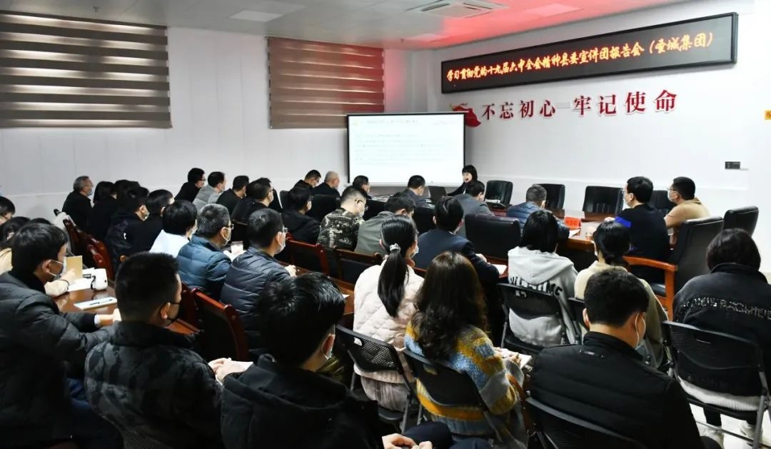 根据云霄县委统一部署,12月22日下午,学习贯彻党的十九届六中全会精神县委宣讲团报告会在圣城集团召开。会议由圣城集团总经理朱锦武主持,县委讲师团成员、县委党校讲师施妤婷作宣讲报告,集团党委班子、党员干部职工共47人参加本次活动。