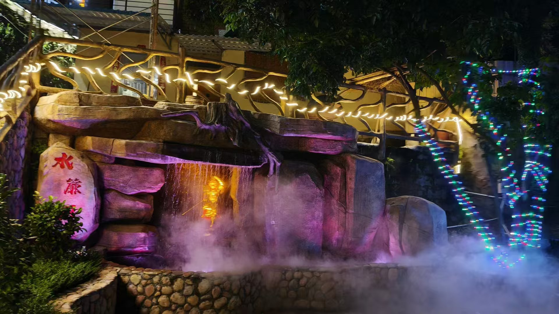 棪树村的蜕变是一场生态觉醒与文化复兴的双重奏。昔日的脏乱猪圈涅槃为产业艺术展厅,本土石材与古朴酒瓮构筑双层生态水池,巨幅枇杷墙绘流淌着丰收的喜悦;那条令人掩鼻的臭水沟化身梦幻“水簾洞”,彩灯勾勒出孙悟空的灵动剪影;历经六百年风雨的协灵宫前,“上刀梯”“坐刀轿”“下油锅”的古老仪式带着开刃刀与沸油锅的震撼,让沉睡的民俗重焕生机。这里每一处改造都是“最小干预激活边角”的匠心之作:连理榕下的文化展板诉说着多姓盟誓的往事,牛郎织女塑像成为爱情地标;天然叠瀑旁鱼鳞坝与灯光喷泉交相辉映,将自然野趣与人文雅致完美融合。当枇杷采摘季遇上“瀑布光影夜”,游客量激增40%、农副产品与文创销售增长30%的数据,正是生态颜值转化为经济价值的生动诠释。棪树之变,既保留了乡村的筋骨血肉,又注入了时代的精气神,让每一寸土地都跳动着产业与文化的双重脉搏。