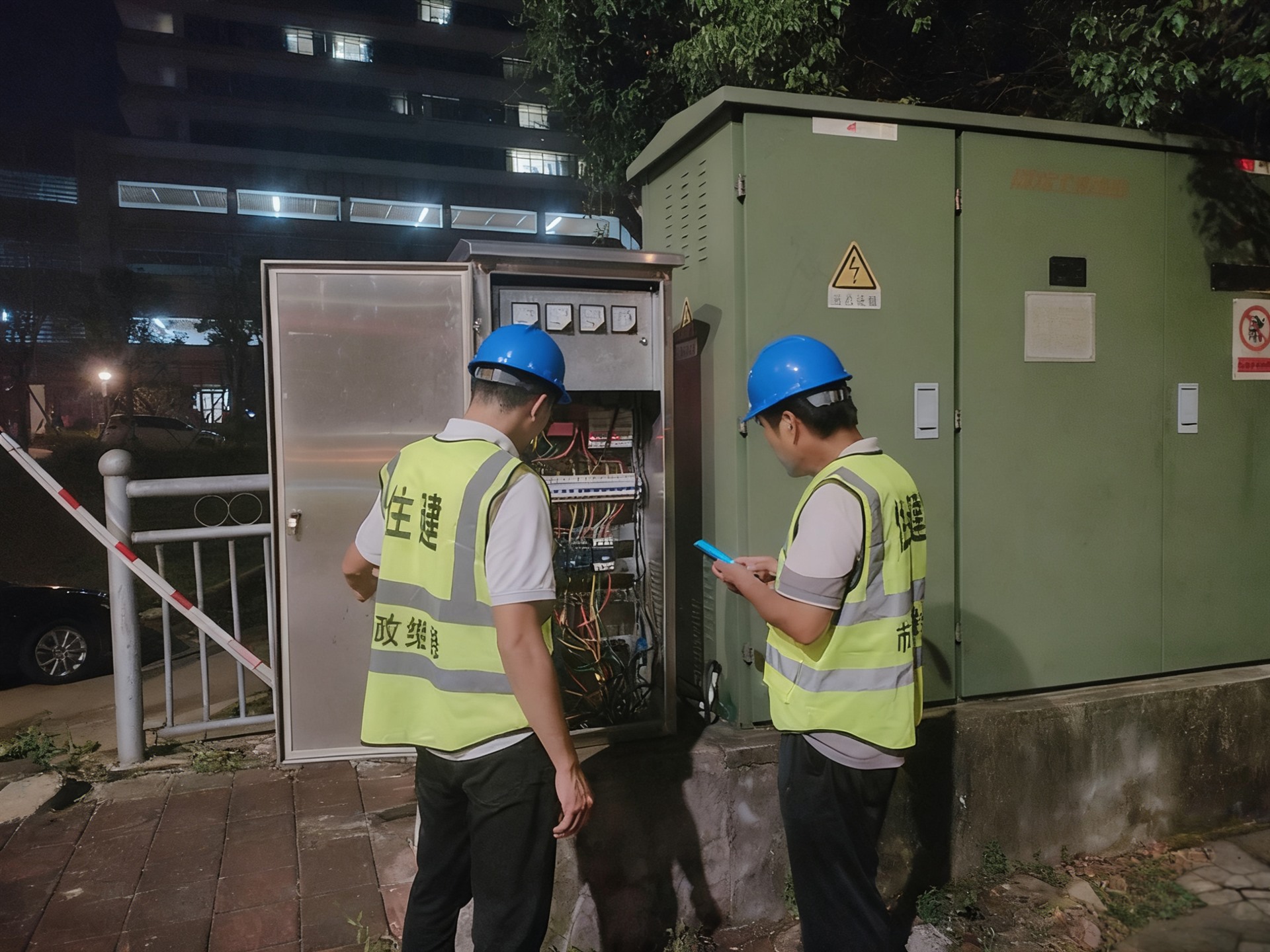 路灯负载监测,守护城市“光明线”。为保障节日期间照明设施安全运行,县住建局城建股技术团队持续开展路灯负荷专项监测。通过采用智能监测设备与人工巡检相结合的方式,对主次干道路灯变压器、控制柜等设施进行满负荷运行测试,全面排查电压稳定性与线路健康状况,确保节日期间路灯照明系统安全稳定运行,为群众夜间出行筑牢“光明防线”。