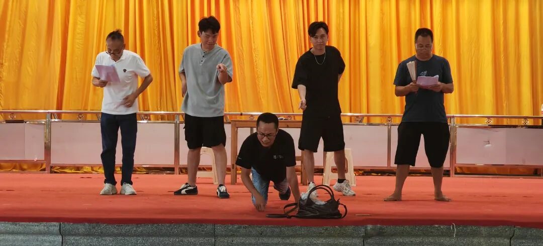 为在全国小戏小品展演舞台上呈现最佳效果,云霄县潮剧传承保护中心自国庆假期伊始,便启动高强度排练计划。演员与乐师放弃休假,聚焦剧情细节、唱腔韵律与身段表演反复打磨:针对剧中“官袍丑”县令推诿时的诡辩神态、谄媚时的卑躬姿态,以及孙三娘推动剧情的关键台词,演员们逐帧抠动作、练语气,力求通过精准的外化表演传递人物性格;乐师团队则围绕二弦、扬琴等传统乐器的音色进行校准,反复调试潮音古韵与剧情情绪的适配度,确保唱腔与伴奏无缝衔接;导演组更多次组织剧本研讨会,结合《南北界》“以小见大”的叙事特点,优化舞台调度与灯光设计,让“南北界”的象征意义更直观呈现。从清晨的身段训练到午后的唱腔合练,再到晚间的细节研讨,排练厅内的潮音与讨论声,成为国庆期间最动人的艺术旋律。
