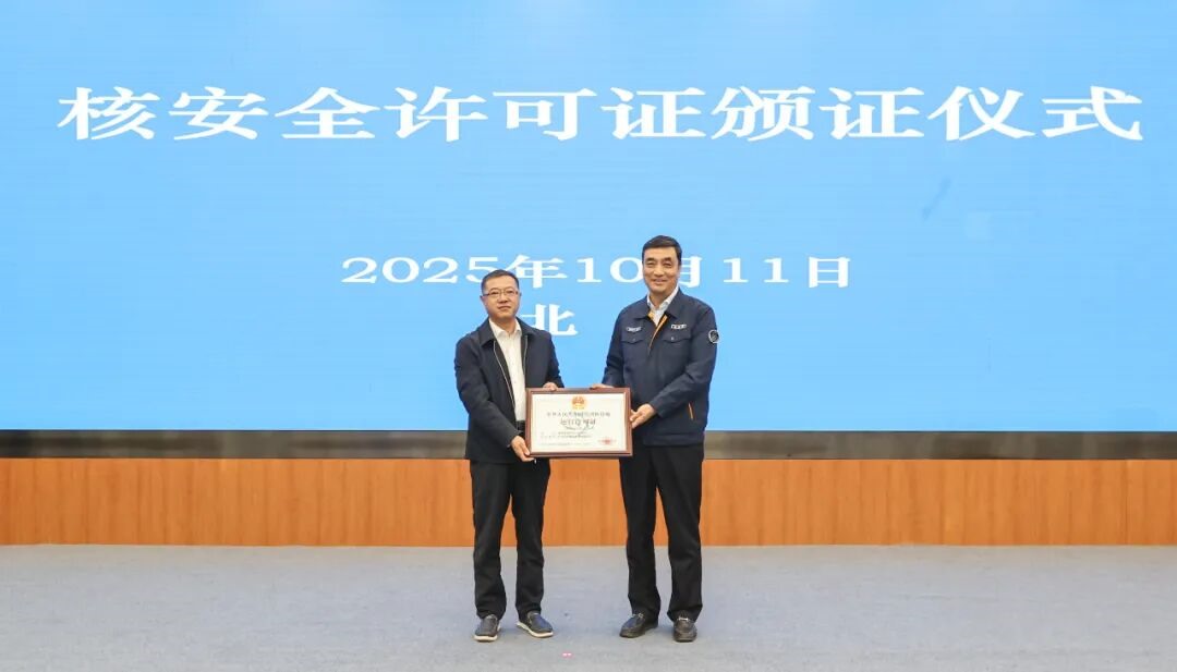 本报讯 10月11日,生态环境部向中核集团旗下中国核电投资控股的漳州核电2号机组颁发运行许可证。生态环境部副部长、国家核安全局局长董保同为漳州能源颁发许可证,中核集团党组成员、副总经理张凯出席活动。当天16时13分,采用国家名片“华龙一号”技术的漳州核电2号机组开始装载首炉核燃料,标志着机组进入主系统带核调试阶段,为后续机组临界、并网发电等工作奠定了坚实基础。
