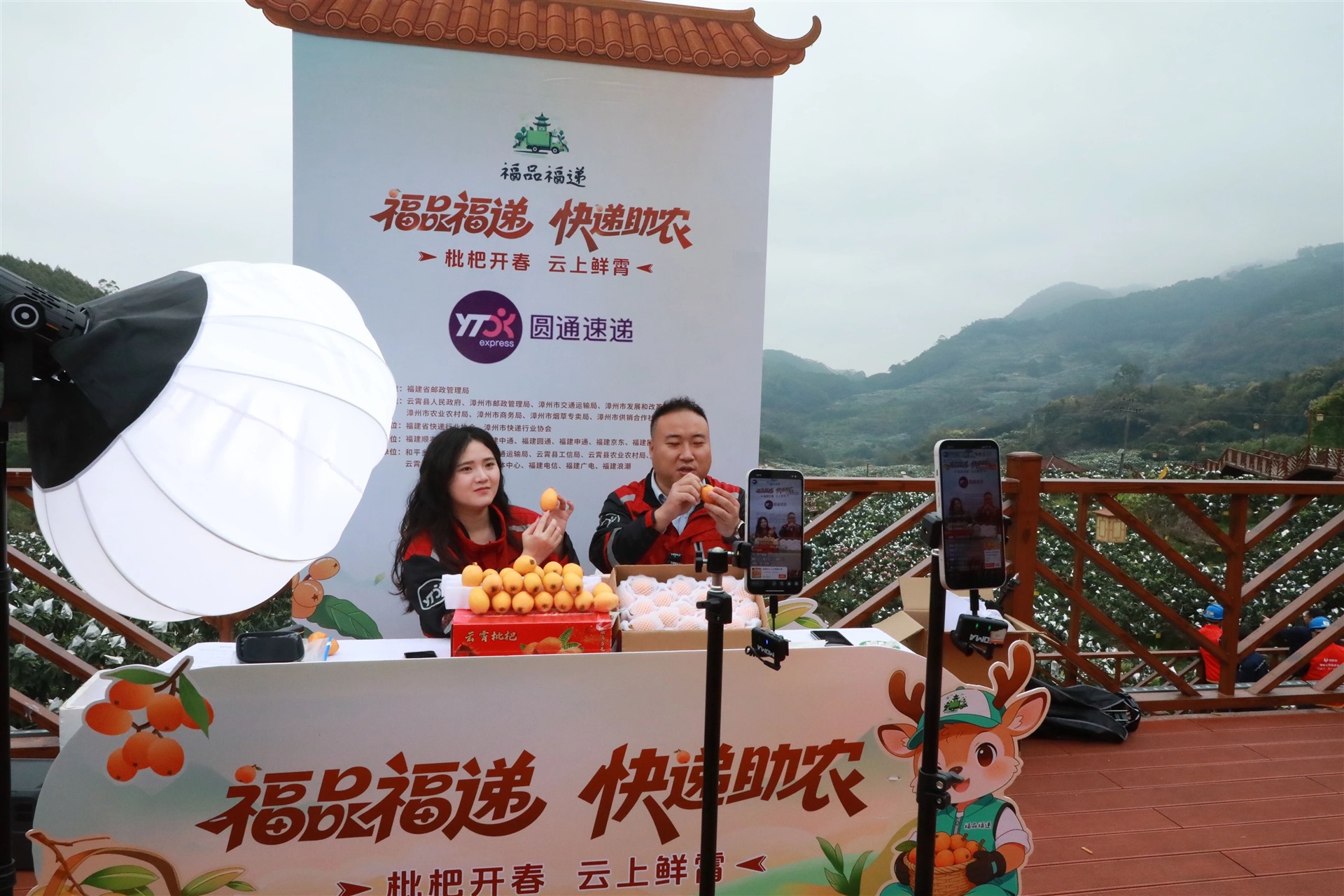 随着王文胜、杨志滨、陈英才一同触发启动球,“福品福递·快递助农——枇杷开春·云上鲜霄”直播活动正式拉开帷幕。